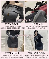 [ココアンドユカ] タイト リブ ニット セクシー ミニ ワンピース オフショルダー 肩出し 長袖 レディース ミニワンピ B0FS4XRF8M