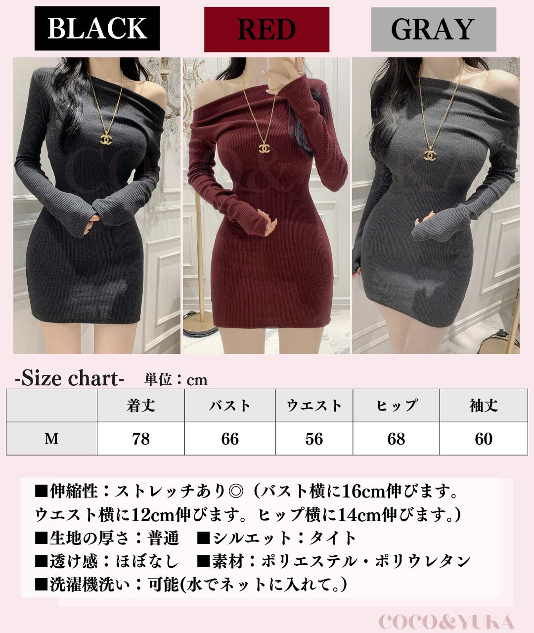 【大人可愛いデザイン】オフショルダー仕様のニットワンピース。タイトシルエットで女性らしいラインを強調し、エレガントさとセクシーさを兼ね備えた1枚です。