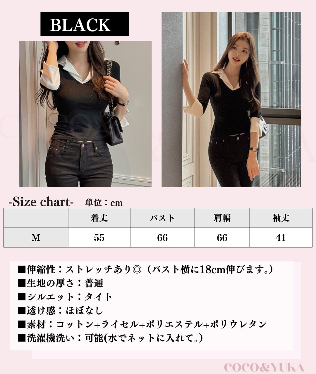 【 ブラック 】 ( M ) 着丈55cm バスト66cm 袖丈41cm