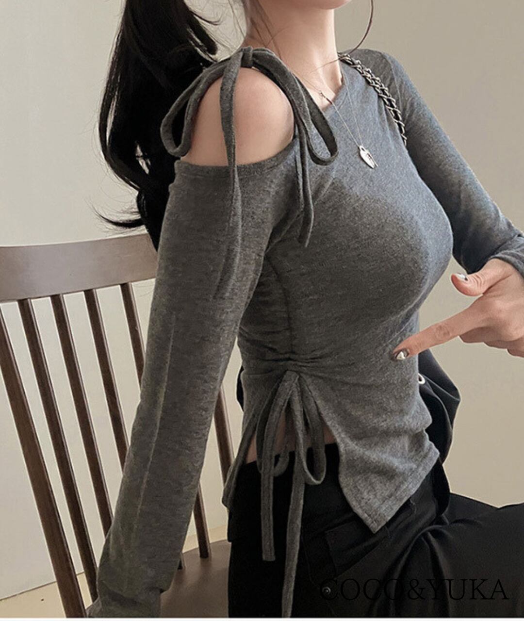 【 可愛い 肩出し オフショルダー ニット トップス 】
