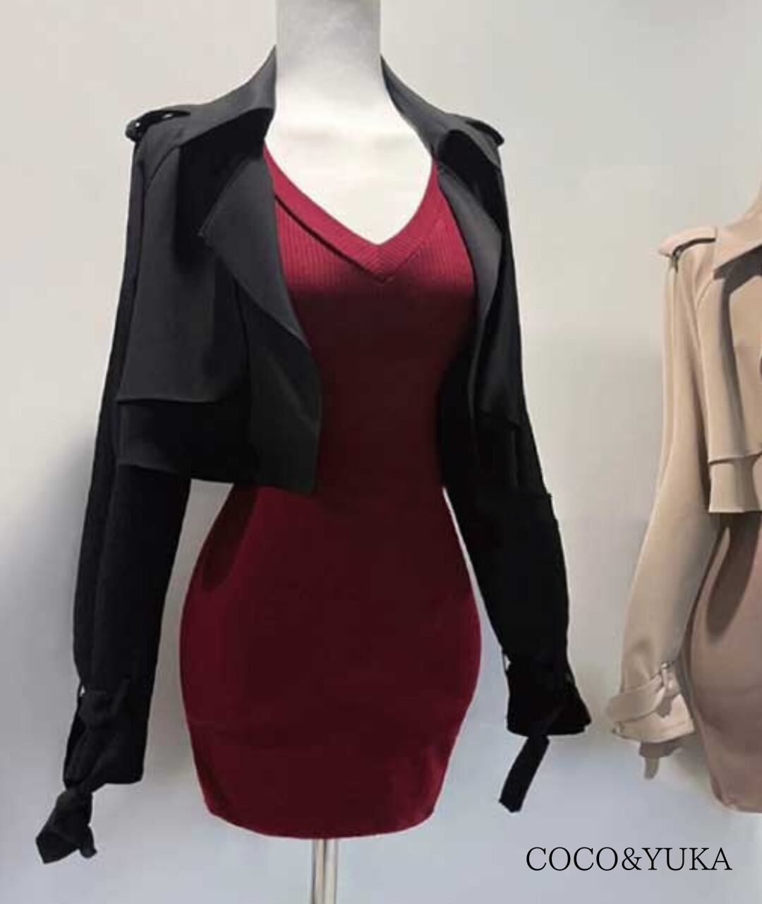 [ココアンドユカ] Vネック タイト ワンピース ミニ セクシー リブニット 胸あき 谷間 強調 オフショルダー ミニワンピ 長袖 ボディーライン レディース B0DT8PV8W6 | COCO&YUKA