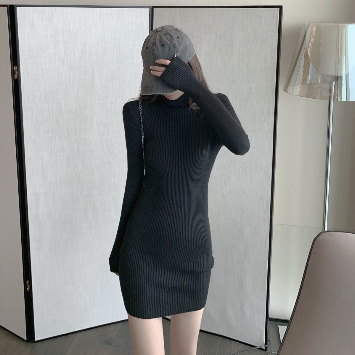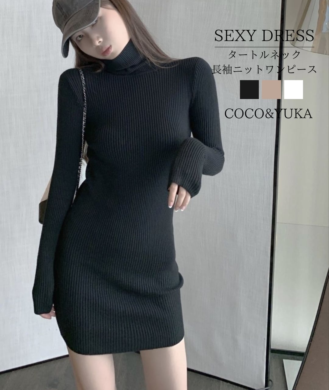 [ココアンドユカ] タートルネック タイト リブ ニット セクシー ミニ ワンピース 長袖 レディース ミニワンピ ハイネック カジュアル 秋 冬 可愛い B0FWJW7JZW | COCO&YUKA