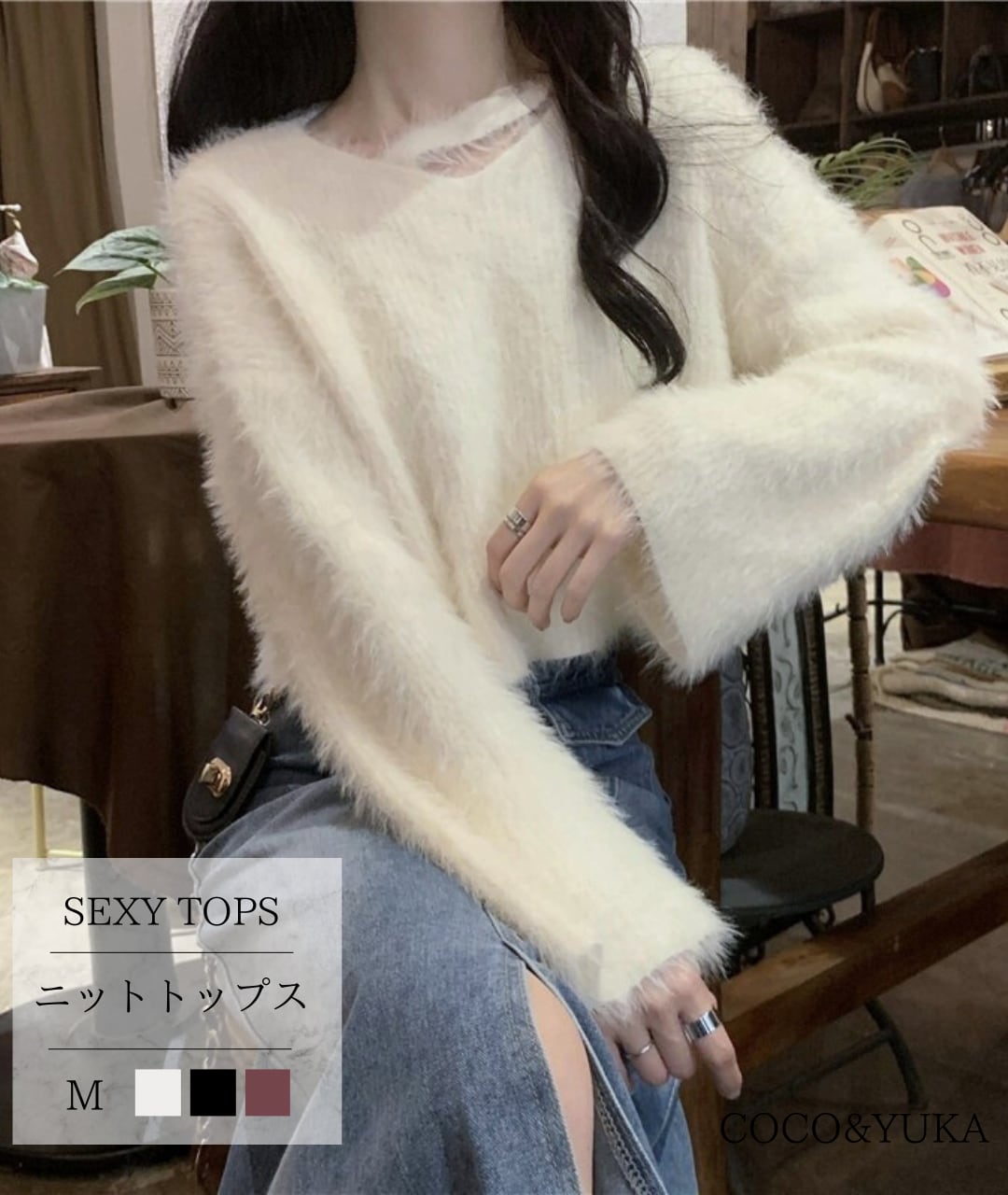 COCO&YUKAの【 胸元 カットデザイン フェミニン ニットトップス 】