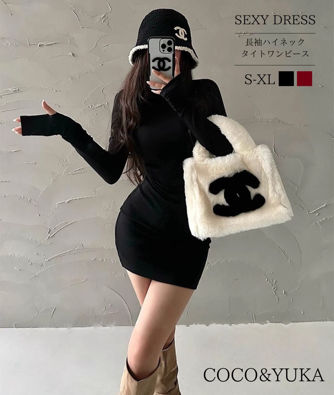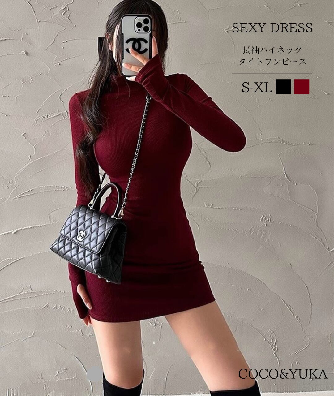 COCO&YUKAの【ハイネック指穴付きタイトニットワンピース】