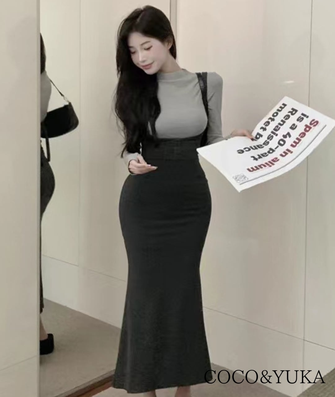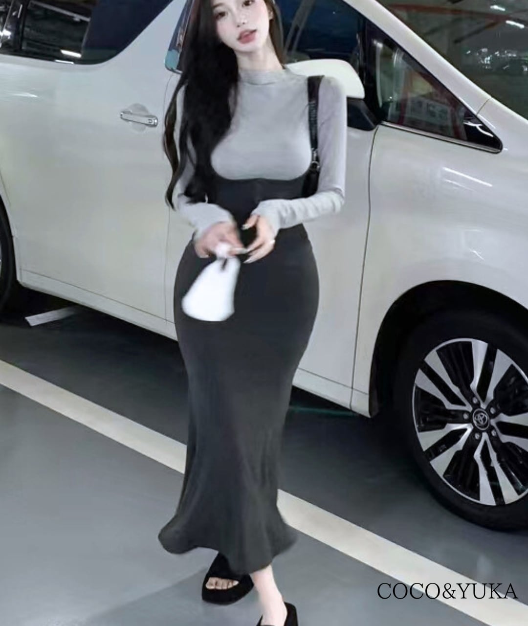 ハイネック長袖トップス+ロングワンピース の最強コンビセットです。