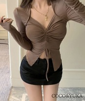 COCO&YUKAのへそ出しデザインの長袖トップス。