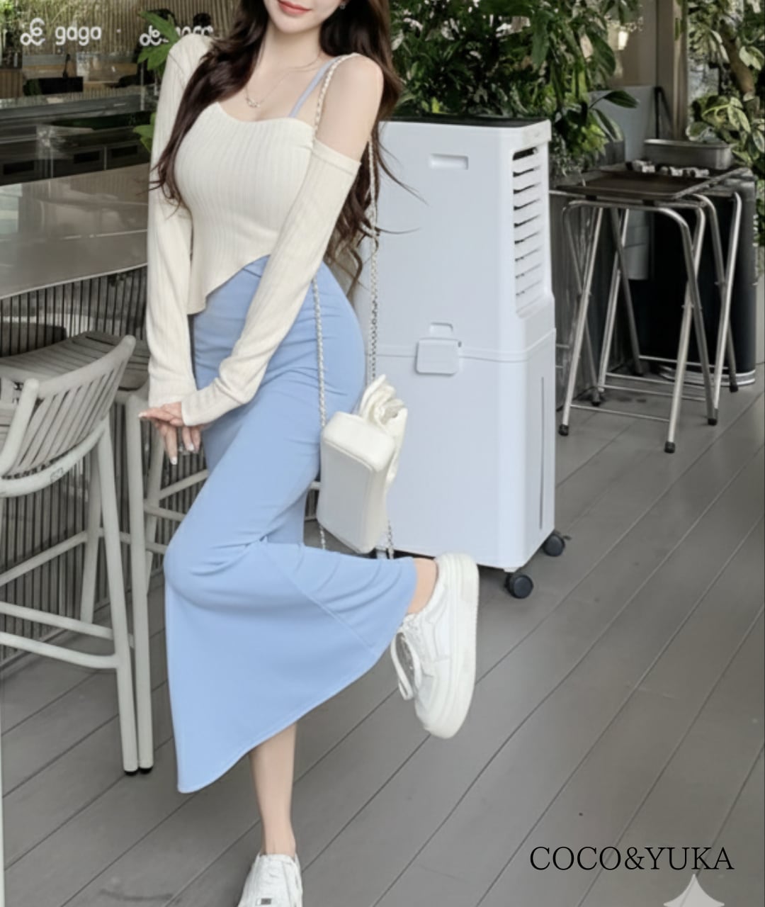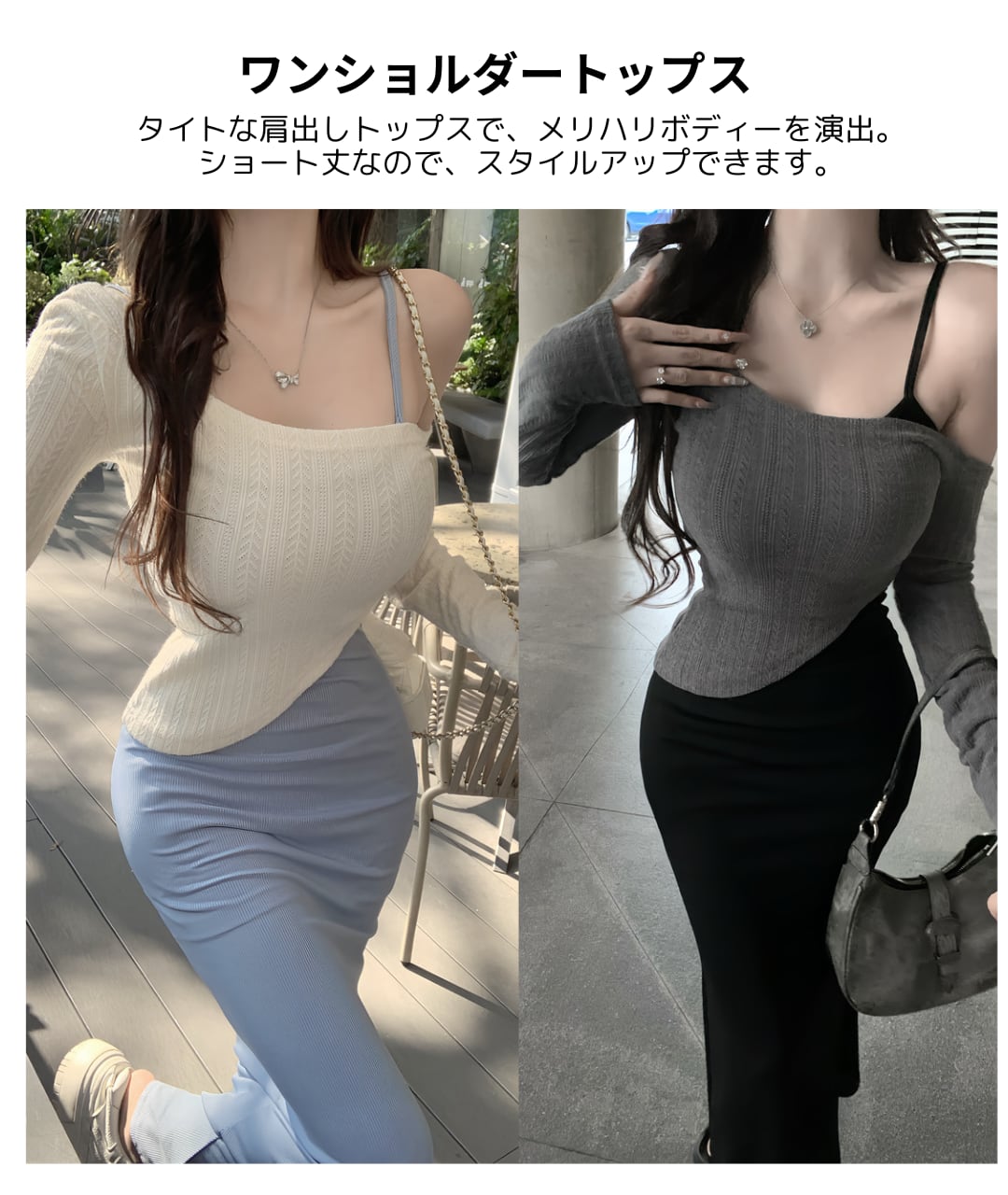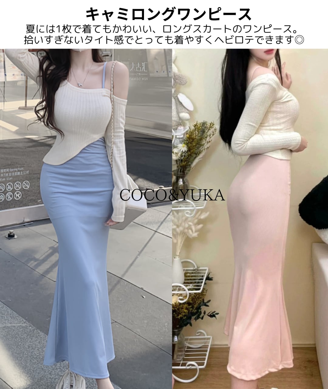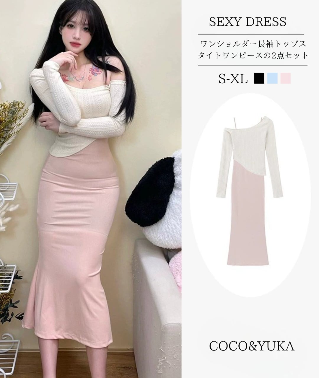 [ココアンドユカ] 2way セクシー ロング タイト ワンピース 2点 セット オフショルダー 長袖 トップス 肩出し スカート ボディコン キャミソール ロング丈 かわいい キャミワンピース ミニ ショート 丈 きれいめ 上品 デート 普段着 春 秋 B0GQM8BNZK | COCO&YUKA